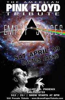 The American Pink Floyd Tribute Show **** Empty Spaces **** Cactus Jack's - Sat. April 2nd This is the ultimate tribute to Pink Floyd Killer Light Show - Awesome Vocals and Stage show