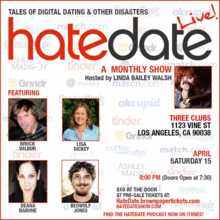 A monthly comedy storytelling show about dating in the digital era. The show features world class, award winning comics and storytellers who are willing to share the details of their adventures in searching for love in the modern age. It is hosted by actress and comedian Linda Bailey Walsh.