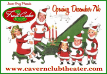 Past Review by Danny Lemos: Christmas comes every year along with the arrival on the Silverlake cabaret scene, evidenced quite literally underground, of the Fruitcake Follies at the Cavern Theater under Casita Del Campo restaurant. Former Disney theme-park performer James Gray and his band of fellow singers/actors/dancers/miscreants produce a cozy and entirely professional holiday farce complete with a boffo cast, deluxe musicality and detailed sets. The mix is 30 percent schmaltz, 30 percent camp, and 90 percent humor. The foundation of the show is the witty lyrics and music. And that is the nature of this show. Funky, loose, and fun, though not the slightest bit of professionalism is lost in the down-home feel to the performance. And a "home for the holidays" flavor is somehow enlivened by Momma, a larger-than-life local drag star. Momma is a more than established trouper when it comes to local Southland causes. Wherever there is a fundraiser with catering, there's Momma! With her trademark "Connie Stevens" wig styles and a Baby Jane-inspired makeup job, Momma is meticulous in her costuming and performance, appearing in one over-the-top number using a Christmas tree skirt as a shawl. The effect was both hilarious and perfectly themed.