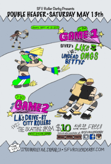 5:30 - Doors 6:00PM - Game 1: SFV Like OMGs vs Undead Bettys 7:30PM - Game 2: (Mens roller derby!) Drive-By City Rollers vs The Skaters Grim