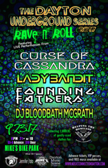 Rave N' Roll at Mike's Bike Park combines fantastic music with an indoor bike park! Woah! This aMAZing converted warehouse space features some of the BEST ramps, walls, and pump tracks in the state! Come and ride this beast to some of the sickest beats in town, or just dance the night away! Either way, get here and catch... *** Curse of Cassandra *** *** Lady Bandit *** *** FOUNDING FATHERS *** *** DJ Bloodbath Mcgrath ***
