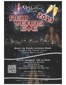 Ring in the New Year with 98 Bottles! Steph Johnson joins us in The Back Room for a special New Year's Eve performance. Enjoy delicious hors d'oeuvres, fun party favors, and a champagne toast at midnight!