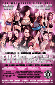 PWS' Bombshell Ladies Of Wrestling returns to Rahway, NJ on Thursday December 6th with Event #2