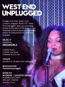 WEST END UNPLUGGED is an exciting new concert series launching at W London Leicester Square featuring the West End's hottest shows and their talented casts, singers, songwriters, recording artists, and special guest stars from the West End, Broadway, Tv, and Film. A raw, acoustic, up close and personal evening with London's Finest. A raw and intimate concert series produced by Broadway and TV veterans! NEXT UP cast members of West End's DREAMGIRLS!