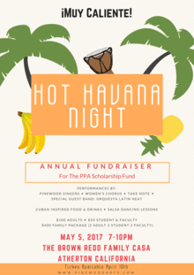 Come join us for an evening of Cuban-inspired food and cocktails, music and salsa dancing with special performances by the Pinewood Singers, Women's Chorus, and special guest band Orqestra Latin Heat. Can't salsa? No problemo! Our resident salsa instructor, Ms. Carrie Davis will teach us a few smooth moves so you can salsa your cares away!