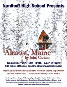 Almost, Maine is the hugely successful romantic comedy set in a mythical town in the northern woods where nine couples fall in and out of love in very unexpected ways. Almost, Maine runs December 7, 8, 14, and 15 at 8pm.