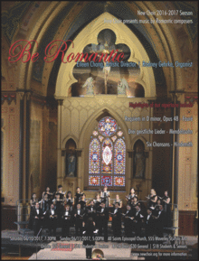 Savor the beguiling melodies and lush harmonies of the Romantic era composers in a program of varied styles and origins. From music inspired by folk songs to dance music to spiritually uplifting selections, we will bring you music that will caress, inspire, and move your body and soul. This is music to share with those you love most: family, friends, and colleagues with whom you wish to share something special and personal. And don't forget your handkerchief!
