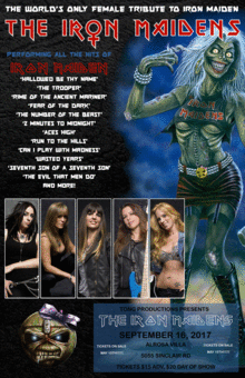 World famous all female Iron Maiden tribute band, The Iron Maidens are coming to Columbus, Ohio on Saturday September 16, 2017 at the Alrosa Villa!!! Ticket are $15 in advance, $20 day of the show. Opening bands TBA