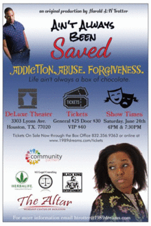 This gospel comedy stage play will make you laugh, cry, dance, sing, think and have a good time experiencing the rise and fall of thee Vicki Lorraine Morgans.
