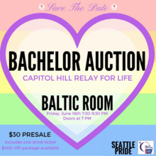 Join our Second Annual Pride Bachelor Auction at the Baltic Room. The phenomenal Stacey Starstruck will be auctioning off eligible bachelors for a good cause: all of the proceeds benefit the Relay For Life of Capitol Hill! Whether you're enjoying an evening out with your besties, kicking off Pride month, looking for that special someone, or taking action and giving back to the community, there's something for everyone! | 21+