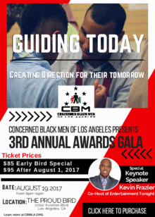 Concerned Black Men of Los Angeles would like for you to join us in an evening of food, networking and fundraising. We will present awards to our mentees and mentors for their outstanding service, dedication and advancement of youth in our community.