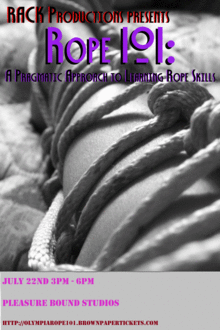 This class is for those looking to start building their rope skills, or those looking for a refresher from a pragmatic view point on simple and effective ways to enjoy your rope either alone or with a partner. If you've ever wanted to start playing, but are intimidated by the various ways that rope presenters declare you 'should' practice your rope, this is also a class for you as we take a non-judgmental approach to all the reasons you might want to bring rope bondage into your play.