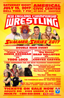 New England Championship Wrestlings Summer Series 2017 continues as the company returns to live action on Saturday night, July 15th at the Americal Civic Center, 467 Main Street, Wakefield, MA with a 7 PM bell time.