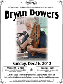 Join Bryan Bowers and your fellow autoharp players in a two-hour workshop Sunday, Dec. 16 at the Olalla Community Hall ~ 12970 Olalla Valley Road in Olalla, WA.