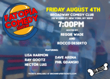 It's all in the name "Fatopia" is a comedy showcase brought to you by Reggie Wade and Rocco Deserto of Big Boned Productions. "Fatopia" will literally and figuratively bring you the biggest (or average sized, we don't discriminate) and brightest comedians in the New York City comedy circuit! The show is large and in charge, and will prove that once you go fat, it's pretty hard to go back.