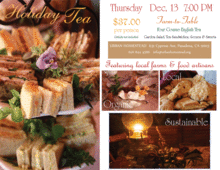 Garden salad Tea sandwiches (egg & cress, apple & arugula, cheese & chutney) Scones with jam and cream Dessert All the tea you can drink!