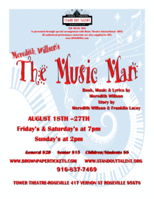 Stand Out Talent presents the nostalgic family musical for all to see! The Music Man is family entertainment at its best. Meredith Willson's six-time, Tony Award-winning musical comedy has been entertaining audiences since 1957 and is a family-friendly story to be shared with every generation. The Music Man follows fast-talking traveling salesman, Harold Hill, as he cons the people of River City, Iowa, into buying instruments and uniforms for a boys' band that he vows to organize this, despite the fact that he doesn't know a trombone from a treble clef. His plans to skip town with the cash are foiled when he falls for Marian, the librarian, who transforms him into a respectable citizen by curtain's fall.