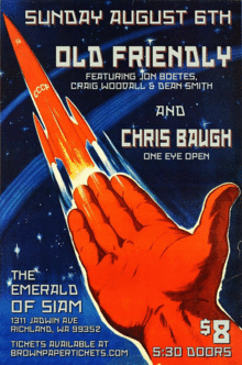 Old Friendly (members of Small, Housebroken, Spydial, etc) Chris Baugh (One Eye Open) $8adv/dos 5:30pm doors All Ages / 21+ bar w/ID