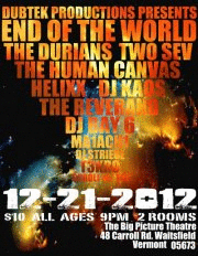 Come spend the night with us, as we invade one of the most unique venues in VT; The Big Picture Theater in Waitsfield. Dubtek Productions has put together the show to put an end to the end! With multiple rooms, 2 stages, and dj's going at it at all times. There will something for all you EDM fans to dance to, hip hop, dubstep, trap, glitch, moombahton, house, and sooooo much more!! Our projection and light show on the big screen in the main room will leave you in awe and wanting more!! Over 10,000 watts of sound to keep your blood sugar up, this will definitely be the party to end the year!