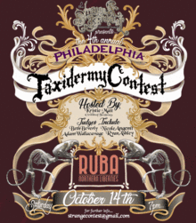 Please join us for a wonder filled evening of taxidermy show and tell, presented by The Strange and Unusual Oddities Parlor and hosted by Kristie Pagliaro Matt of Cloven Hoof Taxidermy. This year's competition will be once again be held at The Ruba Club in Northern Liberties, on Saturday October 14th at 7pm. We will feature competitors of all skill levels displaying and discussing their taxidermy pieces, be they created, collected, or altered. Our illustrious panel of judges will include: Beth Beverly- artist, teacher and owner of Diamond Tooth Taxidermy, Adam Wallacavage- artist, photographer and chandelier maker, Nicole Angemi, MS,PA (ASCP)- Pathology Assisantant and creator of I Heart Autopsy, And Ryan Ashley Malarkey- tattooer, co-owner of The Strange & Unusual Oddities Parlors, and winner of Inkmaster Season 8.