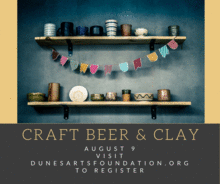 The class will be held in our Clay Cabin at the Dunes Summer Theatre. Leading the class is local ceramic artist Samantha Purze. Samantha will share tips and tricks to creating a beautiful work of art that you will be able to display proudly. Registration includes all supplies and 1 craft brew. A small cash bar by Darkstar will be available. Once you are finished glazing we will fire your piece in our kiln and it will be available for pick up on Saturday August 19.