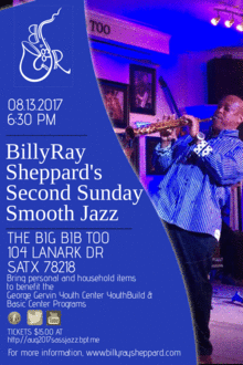 BillyRay Sheppard brings the best of smooth jazz to live music lovers every Second Sunday. BillyRay teams up with San Antonio's finest musicians to bring his brand of Smooth Jazz while benefiting a worthy charity. August is no exception. Each patron is asked to bring personal or household supplies to benefit the George Gervin Youth Center YouthBuild and Basic Center Programs.