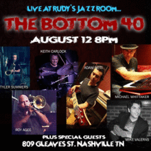 Nashville's premier original contemporary jazz, fusion and high energy funk band will be making a rare appearance at Rudy's Jazz Room. Special guest will be drummer Keith Carlock of Steely Dan. Also playing : Adam Nitti - bass, Michael Whittaker - keys, Tyler Summers - sax, Roy Agee - trombone, Mike Valeras - guitar, plus special vocal guests.