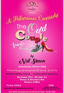 Oscar and Felix are now Olive and Florence in this version of Neil Simon's comic classic. It's the 80's and Olive's gal pals get together for trivial pursuit rather than poker. The Pidgeon sisters are now the Castilian-accented Costazuela brothers. What remains the same?...The LAUGHS!!!
