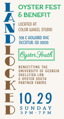 LandLocked by Oyster South, will feature handcrafted oysters from across the South and beyond, served on the half shell by the oyster farmers that raised them.