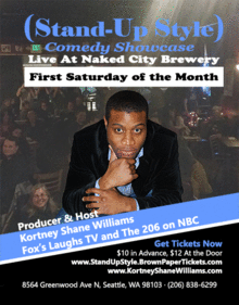 (Stand-Up Style) is a monthly comedy showcase that takes place the first weekend of every month at Naked City Brewery & Taphouse in Greenwood, Seattle.