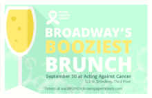 On September 30, Acting Against Cancer will be hosting Broadway's Booziest Brunch at their rehearsal space in ArtSpace (323 W. Broadway). The event will kick off with an hour-long mix-and-mingle reception at 12 noon featuring mimosas, bloody Marys, cocktails, brunch food and more. During this time, any and all attendees can register to perform a song (solo or duet) for $5. Interested performers will quickly review their number with the pianist to ensure clarity on tempo, cuts, etc.