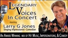 With over 2,400 Las Vegas performances to his credit...."Entertainer of the Year" and "Impressionist of the Year" are two titles often used to describe 'Comic Singing Impressionist' Larry G Jones.