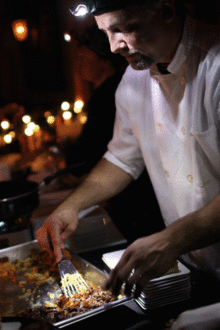 We only work with locally produced food procured by us and hard-to-find ingredients, imported from places that specialize in them. With each new film, we write a new menu specific to its story. Sometimes the menu is literal and sometimes it is inspired interpretation. In all cases, each dining experience is different because each film is different.
