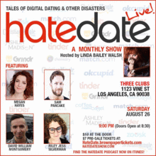 A monthly comedy storytelling show about dating in the digital era. The show features world class, award winning comics and storytellers who are willing to share the details of their adventures in searching for love in the modern age. It is hosted by actress and comedian LINDA BAILEY WALSH.