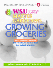 WSU Jefferson County Master Gardeners are hosting a seven-week Advanced Growing Groceries lecture series from Sept 26th - Nov 7th, on Tuesdays from 1:00 - 4:00PM. There are also three Saturday field trips and a movie night. Topics covered in this class include: Seed Saving, Autumn and Winter Gardening, Food Cultivation and Preservation, Building Healthy Soil, Insect Damage, and Best Winter Cultivation Practices.