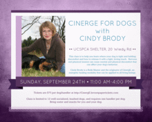 Cindy Brody is a Reiki Master and the originator of CinergE, an energetic healing modality that can be applied to all living beings.  CinergE combines Reiki, energy balancing, kinesiology, deep tissue massage, acupressure, and animal communication to free up energy blockages and disturbances.