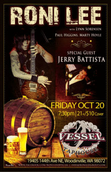 Joining Roni this time around will be Lynn Sorensen. A Seattle native, Lynn spent a few years as the bassist for Paul Rodgers and Bad Company and has worked with Roger Fisher and Mike Derosier of Heart, Sir Mix-A-Lot, Randy Hanson, Ronnie Montrose and currently plays bass for Spike and the Impalers. Lynn is a true rock legend from right here in our own back yard!