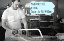 In this class, participants learn hands-on knife skills and butchery techniques from our Chef de Cuisine, Alex Leblanc. Throughout a nose-to-tail butchery demo of a pig from Wyndswept Farm in Limerick, Maine, well review anatomy and cooking tips; learn how to break down, debone and skin properly; and discuss sourcing pasture-raised pork sustain-ably in todays food system. Learn where your favorites cuts sit on the animal, and discover pieces you never knew existed. Nothing connects you closer to your food quite like this experience.