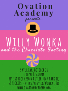 Please join us as we embark on the sweetest musical theater journey this fall in Willy Wonka and the Chocolate Factory JR! Follow Charlie Bucket as he, along with 4 other lucky Golden Ticket holders, are led around the Wonka Chocolate Factory by Mr. Willy Wonka himself. This 45-minute live action musical performance is sure to have you and your family on the edge of your seats!