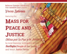 JOIN US for a collaboration between Bellevue Chamber Chorus and City Cantabile Choir! Fredrick Lokken and Frederick N. West co-conduct the stirring Mass for Peace and Justice (Misa por la Paz y la Justicia) by legendary Argentine composer Ariel Ramirez, featuring the traditional 6-piece Andean ensemble Surllajta and tenor soloist Justin Ferris. Each chorus will also present individual sets of dynamic music from the region in the first half of the concert. Dont miss this excursion into the music and spirit of Latinoamérica!