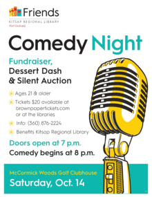 Enjoy some laughs at McCormick Woods Clubhouse at this annual fundraiser for the Port Orchard Friends of the Library. All proceeds go towards the Kitsap Regional Library 2018 Summer Learning Program.