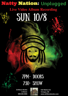 (Viroqua, WI)Before2016 Natty Nation neverperformeda full "acoustic" set. Eddy Nix, owner of Driftless Books & Musicin Viroqua, WI asked them to headline the kickoff event for the newly formed Wisconsin Roots Music Cooperative.As members of the Cooperative,Natty decided to close out the event like all of the other acts who had performed all day long, and unplug.