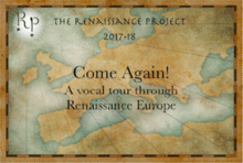 Take a tour of Renaissance Europe with The Renaissance Project. Youll cross land and ocean, stopping in present-day Italy, France, Spain, England, and the Netherlands. Experience the different flavors of these places through the music of Palestrina, Monteverdi, Josquin de Prez, Orlando di Lasso, Byrd, Victoria and many more. From the divine and spiritual sacred settings to the playful story-telling adventures of the secular, feel the magic of this a cappella music. This is truly one of those "Best of" concerts you wont want to miss!