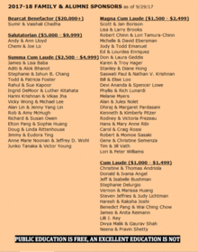 A SPECIAL NOTE TO OUR INDIVIDUAL FAMILY & BUSINESS SPONSORS: