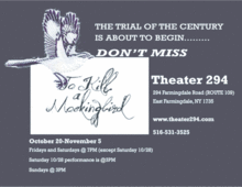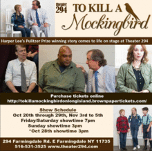 For the first time in well over a decade, this acclaimed stage adaptation of Harper Lee's famous novel To Kill A Mockingbird comes to the Long Island stage at Theater 294 in Farmingdale October 20 to Nov. 5.