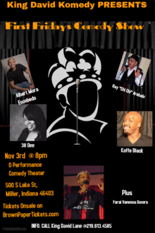The First Friday of every month we put together a great lineup of stand-up comedy and/or improv. This month's show features King-David Lane as your host as well as 38 Dee, Farai Vanessa Gotora, Ray Arebalo, Koffe Black, Albert Mora Escobedo. Tickets are $10 if you buy in advance by clicking the link below or $15 at the door. More to be announced soon!