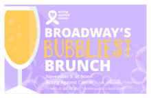 On November 5, Acting Against Cancer will be hosting Broadway's Bubbliest Brunch a kid-friendly version of Broadway's Booziest Brunch at their rehearsal space in ArtSpace (323 W. Broadway). The event will kick off with an hour-long mix-and-mingle reception at 12 noon featuring mimosas and bloody Marys for the adults and a fun sparkling juice bar for the kids. There will also be plenty of brunch bites and activities around the space. During this time, any and all children in attendance can register to perform a song (solo or duet) for $5. Interested performers will quickly review their number with the pianist to ensure clarity on tempo, cuts, etc.