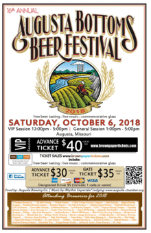 Augusta Bottoms Beer Fest is an annual fund raiser for 3 local a non-for-profit organization help make our community a better place. We average 40+ independent brewers from around the greater St Louis area. The annual Augusta Bottoms Bier Fest is a one day, 5 hour event.