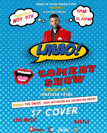 House of Payne Productions presents the LMAO Comedy Show hosted by Jonathan Payne. This event will be held at The Swiss located at 1904 Jefferson ave Tacoma WA 98402. You don't want to miss out on this amazing night of comedy as we bring you some of the best and up and coming comedians in the PNW. For this months show we will be having Tacomas own Boe-Blast Headline our event! If you haven't been to a Boe Blast show your in for a treat, With his high energy and presence that demands attention its safe to say your going to be in for a full night of stomach pain from laughter! We also will have Ash'ley Rushin hitting the stage bringing you sense of humor from a angle that you have never witnessed before. Come be apart of history as we kick off the first ever LMAO Comedy Show and enjoy and an entertaining night of comedy.