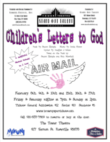 Stuart Hample, the creator of the best selling book, has adapted CHILDREN'S LETTERS TO GOD form the page to the stage with music by David Evans (Birds of Paradise) and lyrics by Douglas J. Cohen (No Way to treat a Lady). Original direction by Stafford Arima (Altar Boyz) and Original Musical Staging by Patti Wilcox.
